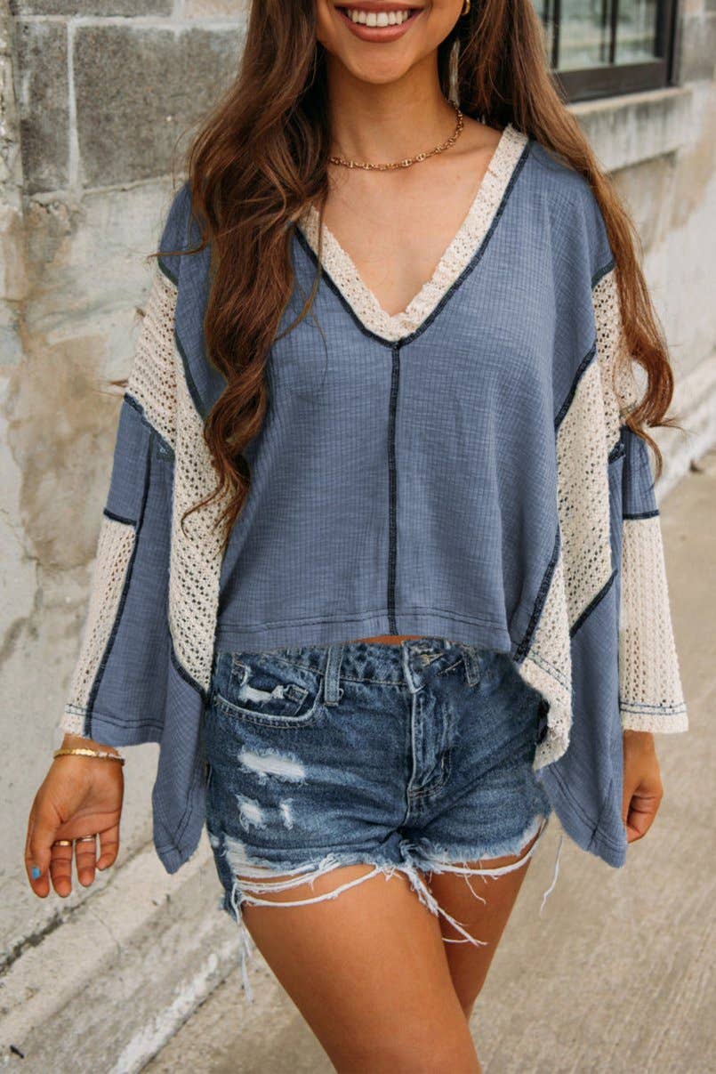 Introducing the top, a must-have for your wardrobe. The relaxed fit provides a slouchy yet stylish look, while the exposed seams and raw hemline add a touch of vintage charm. Feminine and fashionable, the crochet detail and high low design flatter any body shape. Invest in versatile and flattering fashion today.